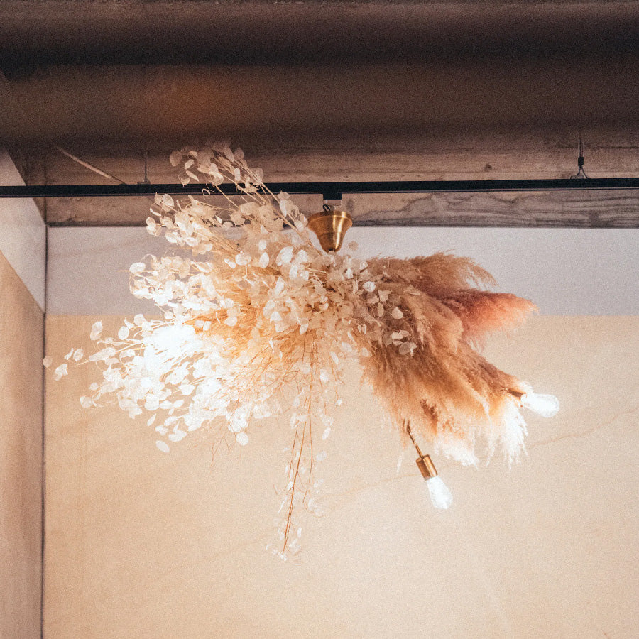 魅力的なkoko charmのドライフラワーシャンデリアは、個人宅やショップのインテリアにエレガントな魅力をもたらします。