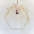 こちらの商品は、ヤマシダ、イタリアンルスカス、ストーベを使用した1灯式のドライフラワーシャンデリアです。優雅なフラワーアレンジメントが、六角形のゴールド調フレームと美しく調和しています。ゴールド調のフレームがドライフラワーの鮮やかな色合いを引き立て、モダンで洗練された雰囲気を演出します。インテリアのアクセントとしても最適で、空間に特別な魅力をもたらします。」